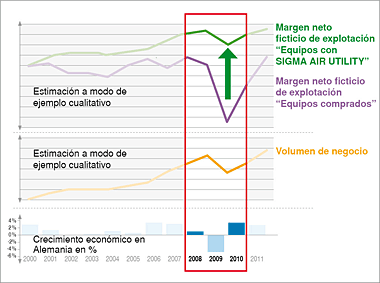 Comprar el aire comprimido o vacío en la cantidad y calidad exactas requeridas, sin adquirir y operar una estación de aire por su propia cuenta, reduce definitivamente los costos. Con el SAU, se fija un precio fijo por metro cúbico de aire, mediante un contrato a larga plazo para evitar los engorrosos cálculos mixtos. Este precio, inalterable durante la vigencia del contrato, cubre los gastos de instalación, mantenimiento y suministro de un volumen determinado de aire. El caudal que sobrepase lo estipulado se fija igualmente a un precio explícito que se factura al cabo del periodo.